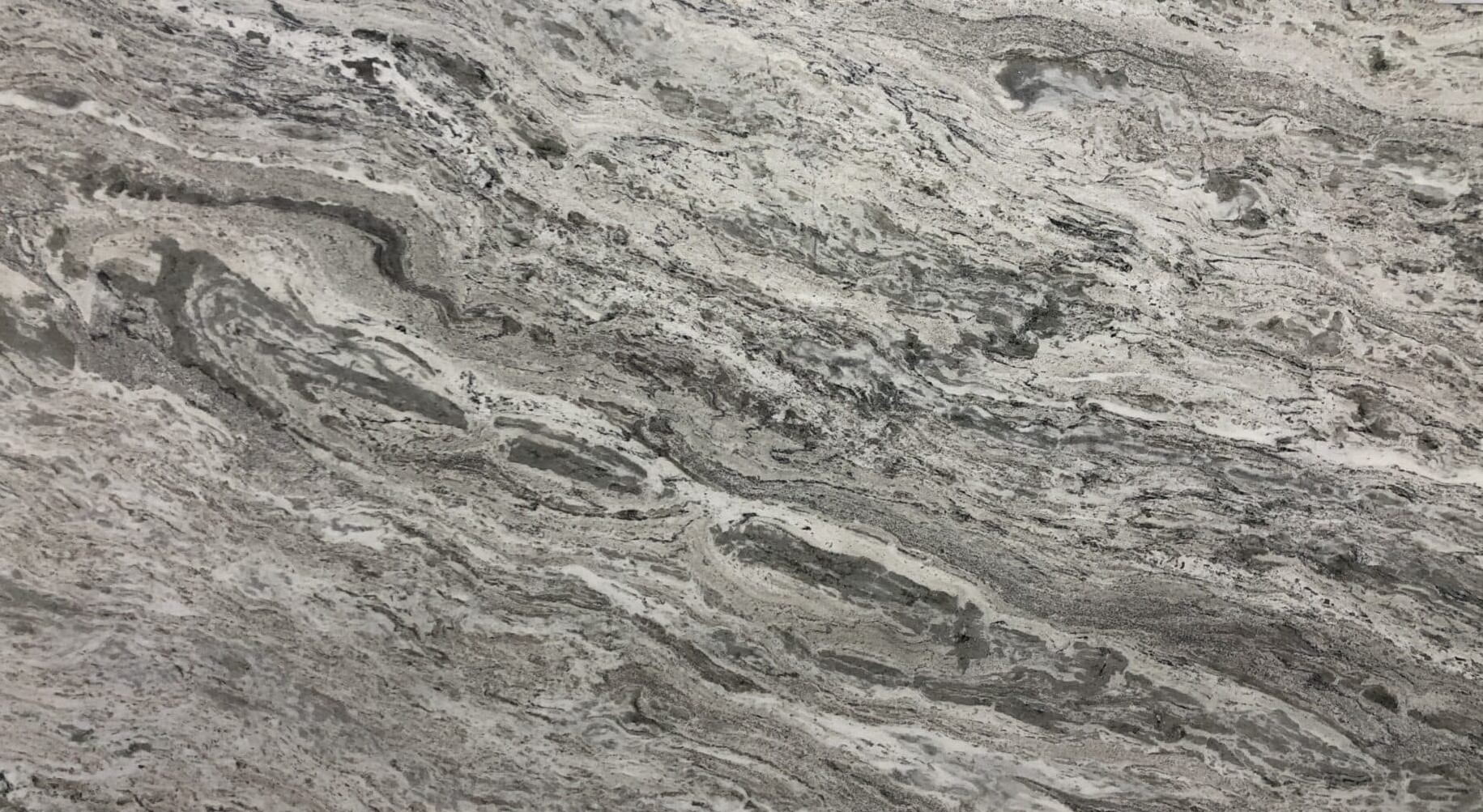 Makalu Granite is a bold and sophisticated natural stone, known for its striking blend of cool gray, soft white, and deep black veining. Its flowing, high-contrast patterns create a refined yet dramatic look — perfect for modern, transitional, or even rustic spaces.